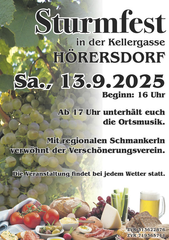 Am Samstag, den 13. September 2025, verwandelt sich die idyllische Kellergasse in Hörersdorf ab 16 Uhr in einen Ort der Gemütlichkeit und des Genusses. Das traditionelle Sturmfest lädt zu einem besonderen Abend ein, bei dem frischer, g'schmackiger Sturm und Trauben-Most im Mittelpunkt stehen. Begleitet wird das Fest von einer Vielzahl typischer Weinviertler Schmankerl, die das kulinarische Herz höher schlagen lassen.